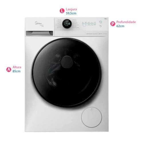 Lava e Seca Midea HealthGuard Smart 13 Kg com tecnologia HealthGuard de limpeza e esterilização, motor Inverter Quattro silencioso e econômico, limpeza do tambor, Spray, conectividade via aplicativo Midea MSmartHome, compatível com Alexa e Google Assistente.Centrifugação