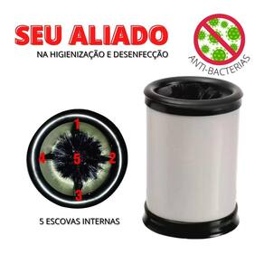 6º após finalizar o processo das lavagens dos copos, fazer a limpeza do produto, removendo a água do compartimento interno e lave em água corrente, faça a higienização das escovas sempre que necessário.