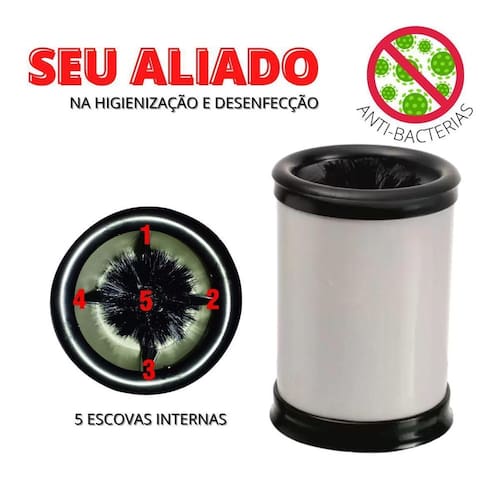 Composto por, pp pvc pe pet. 1 escova central e mais 4 escovas laterais para uma lavagem completa. 3 ventosa para melhor fixação do recipiente