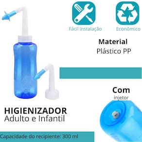 Descrição do anúncio: Conteúdo da embalagem: 1 higienizador nasal com recipiente de 300 ml 1 bico nasal tamanho adulto 1 bico nasal tamanho infantil Características: Alívio de sintomas como nariz entupido, dores de cabeça, espirros e coriza Facilita a remoção de impurezas e bactérias Hidratante para dias de tempo seco Diminui crises de asma, bronquite e outras alergias Previne amidalite e faringite Combate à otite Reduz dores de cabeça e mal-estar causados pela obstrução nasal Procedimento seguro e recomendado por médicos Especificações: Material: plástico pp Capacidade do recipiente: 300 ml Peso: aprox. 115g Livre de bpa: sim Principais perguntas sobre o produto e respostas: 1 qual a capacidade do recipiente A capacidade do recipiente é de 300 ml. 2 pode ser por crianças e adultos Sim, o higienizador nasal é adequado e eficiente tanto para crianças quanto para adultos. 3 qual é o material do produto O produto é feito de plástico pp e é livre de bpa. 4 como é feito o procedimento de lavagem O procedimento é indicado com soro fisiológico ou água morna com sal, escolhendo a ponteira adequada, inclinando a cabeça e apertando o botão para iniciar a lavagem. 5 o produto vem com Sim, o produto possui do vendedor de 30 dias. 6 é necessário virar a cabeça para o lado durante a lavagem Não, não é necessário virar a cabeça para o lado, evitando possíveis dores no ouvido. Marca: Não Informado Ean: 7904263823280