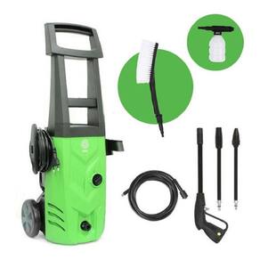 Lavadora de Alta Pressão PW-CO9M com motor universal, bico vario e bico turbo. Mangueira com trama de nylon de 4 metros, 5 metros de cabo elétrico. Conta com bomba axial, pistões de aço inox e cabeçote de alumínio, rodas e alça para facilitar o transporte, e aplicador de detergente. É ideal para uso residencial.