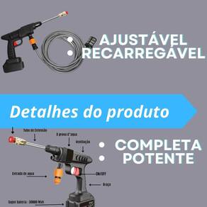 Bateria de lítio: 3 vezes mais potente que uma mangueira convencional, proporcionando desempenho confiável. Design portátil e leve: ergonomia e aderência confortável para uma experiência de uso agradável em qualquer lugar. Sem fio: mobilidade total com recarga, sem a necessidade de tomadas ou extensões. Fácil de usar: punho ergonômico e controle simples, requer apenas água de qualquer fonte. Alta potência: potência de 240w a 400w, ideal para diversas superfícies. Multifuncional: desde a lavagem de carros até a rega de plantas, com diferentes níveis de pressão.