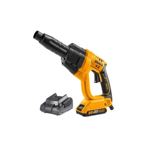 Lavadora de alta pressão ingco à bateria íon-lítio 20v Características: Tensão: 20v Pressão máxima: 24,8 bar 360 psi Taxa de fluxo: 2,2l / min Sistema de parada automática Acompanha 1 conjunto de Ferramenta de aplicação de pulverização de 6 padrões 1 mangueira de entrada de água de 6 m com conector rápido 1 conector de auto-sucção 1 aplicador de detergente e 400ml 1 bolsa portátil Embalado em caixa de papelão Marca: Não Informado