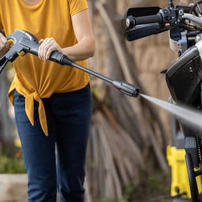 A K2 Plus remove as sujeiras mais difíceis e é perfeita para a limpeza de garagens, quintais, bicicletas, motos, paredes, calçadas, itens de jardim e muito mais, com economia de tempo, esforço e água se comparada com as mangueiras convencionais.