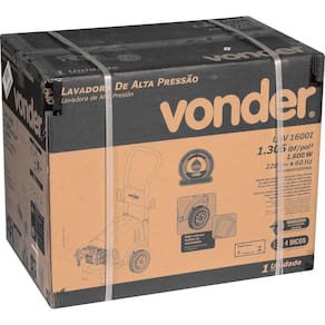 1 Lavadora de alta pressão, acompanha: 1 mangueira de alta pressão com 8 m, 1 cordão elétrico com 5 m, 1 lança, 1 pistola com gatilho, 4 bicos para pulverização (0, 15, 25 e 40), 2 abraçadeiras de metal, 1 mangueira para sucção de 1,90 m e 1 filtro para sucção