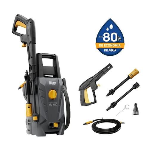 A Lavadora de Alta Pressão WAP WL 1820 é a solução definitiva para todas as suas necessidades de limpeza. Com uma pressão de 1500 PSI, vazão de 330L/h e potência de 1400W, oferece resultados de limpeza impecáveis em uma variedade de superfícies (pátios, calçadas, veículos, móveis externos). Sua grande economia de água possibilita uma redução de até 80% no consumo de água. A pistola de alta pressão proporciona um controle preciso, enquanto a baioneta funciona como um extensor da pistola para garantir a segurança do usuário ao utilizar o produto. O bico regulável permite que você mude o tipo do jato para concentrado ou leque. Além disso, a mangueira de alta pressão de 3 metros oferece uma ampla área de alcance, também conta com um engate rápido, que simplifica ainda mais a desconexão. Área de Alcance: 7 m Bomba: Axial Cabeçote: Alumínio Comprimento da Mangueira: 3 m Porta Acessórios: Sim Altura: 45 cm Ambiente Principal: Jardim e Varanda Capacidade do tanque de combustível: 0 l Cilindradas: 0 cc Composição: Polimeros e metais Comprimento: 26,5 cm Desligamento Automático: Não Desmontável: Sim Itens Inclusos: Bico Ajustável, Mangueira de alta pressão 3 metros, Engate Rápido, Agulha desobstruidora e Manual de Instruções. Jato Regulável: Sim Largura: 23,6 cm Luz indicadora de Funcionamento: Não Manual de Montagem e Instalação: https://product-hub-prd.madeiramadeira.com.br/903127/documents/c8507ee1-16e0-4ca7-821f-2974a6cc3f601893917wapwl1820manual.pdf Material Principal: Polímero Modelo: WL 1820 Motor: Universal Nível de Ruído: Médio Origem do Produto: Importado Peso: 4,7 kg Porta-Fio: Sim Possui Rodas: Sim Recomendações de Uso, Manutenção e Limpeza: Verificar Manual de Instruções antes da utilização. Silencioso: Não Tipo de Jato: Concentrado, Leque Trava de Segurança: Sim