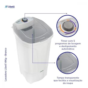 Lavadora De Roupas 14kg 220V Branca Libell Branco A Lavadora de Roupas Libell 14kg e ideal para familias que buscam praticidade e eficiencia. Com capacidade para 14kg e voltagem de 220V, lava grandes volumes com rapidez e economia de agua. Seu design compacto e moderno na branca se adapta a qualquer lavanderia. Robusta, facil de usar e perfeita para o dia a dia. Dimensoes: Altura: 94 cm | Largura: 48 cm | Profundidade: 53 cm