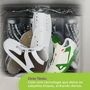 Ciclos de Lavagem - Dia a Dia, Delicadas, Esportivas, Tênis, Jeans e Casacos, Rápido, Panos de Limpeza, Reusar Àgua, Redes, Cama e Banho, Edredom, Brancas