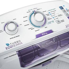 Lava até 8,5kg de roupas. Lave mais em menos tempo