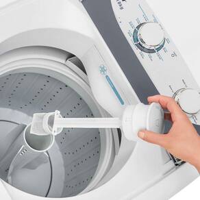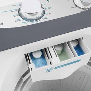 Seu dispenser triplo de gaveta para sabao em po ou liquido, alvejante e amaciante permite ajustar a dosagem dos produtos de acordo com a quantidade de roupas e agua na cuba.