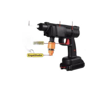 Lavadora jato alta pressão portátil sem fio bateria mini vap Com essa lavadora de alta pressão, você poderá deixar brilhando qualquer material ou superfície. Otimizando seu tempo e tornando o processo de limpeza fácil e eficaz. O tamanho do motor se assemelha muito ao de uma furadeira, ele torna água parada em um jato bem potente que tira qualquer tipo de sujeira de carros, calçadas, paredes, bicicletas, cerâmicas e motos de uma forma rápida e eficaz. Como ele é um produto totalmente recarregável, não necessita ter proximidade com tomadas ou extensões , como nos modelos convencionais.
