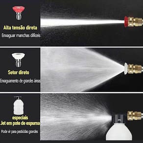 - Lavadora de pressão a bateria 21V: Limpeza potente e sem fios. - Bateria de longa duração: 30000mAh de autonomia para tarefas prolongadas. - Jato de água forte: Remove a sujeira mais teimosa com facilidade. - Portátil e conveniente: Maleta inclusa para transporte seguro e prático. - Versatilidade: Ideal para carros, bicicletas, pátios, calçadas e muito mais. - Mangueira com 5 Metros pode ser utilizada outra maior também - Potência: 240W - Bateria Recarregável: 21V - 30000mAh - Consumo de água: 4L/Min - função de pulverização de espuma