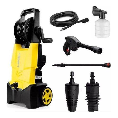 Lavadora de alta pressão, com ótima pressão aliada ao design. Força extra para sujeiras mais difíceis. Com jato d'água ajustável indicada para serviços domésticos como quintais, janelas, tapetes, veículos, motocicletas, telhados entre outras tarefas. Pressão máx.: 1755 (121) Libras (bar) Vazão máx.: 390 L/h Potência Absorvida: 1800 Watts Alimentação: Energia Elétrica Temp. Entrada max: 44 C Difusor Detergente: 0,2 Litros Lança com Regulagem: Sim Lança Turbo: Sim Mangueira Alta Pressão: 5 Mts