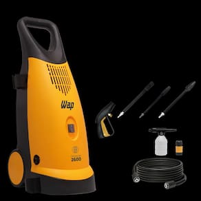 Seja Bem Vindo a DD Máquinas!A lavadora de alta pressão WAP Premium 2600 é a melhor opção para limpar sujeiras pesadas e profundas de grandes áreas com rapidez e agilidade, com economia de tempo e de até 80% de água se comparada à mangueira comum. Com motor de indução, bico turbo, potência de 1900W e pressão máxima de 2400 PSI é o equipamento de uso frequente perfeito para a remoção de níveis incrustados de sujeira nos mais diversos tipos de pisos e superfícies.Equipada com alça e rodas que facilitam o transporte, a WAP Premium 2600 conta com cabo elétrico de 5 metros e mangueira de alta pressão com trama de aço de 5 metros que permitem cobrir uma grande área sem precisar locomover a máquina. Além disso, vem com trava de segurança da caneca, bico regulável (concentrado ou leque), aplicador de detergente e o sistema stop total, que corta o fluxo de água e a energia do motor ao soltar o gatilho, poupando energia e aumentando a vida útil do motor. A lavadora de alta pressão conta também com pistões em aço inox que, junto com o motor de indução, conferem mais durabilidade para o produto.Para deixar o produto mais completo, a máquina vem equipada também com o bico turbo que possibilita a limpeza de sujeiras pesadas de forma mais prática e rápida.Se você procura agilidade e praticidade para o seu dia a dia não perca mais tempo e garanta já a sua lavadora de alta pressão WAP Premium 2600.Características:Tensão: 127v Ou 220v (Escolher No Momento Da Compra)Cor: Amarelo Com PretoPotência Elétrica: 1900wPressão Máxima: 2400 PsiMotor: InduçãoVazão: 360 L/hClasse De Isolação: IFrequência: 60 HzCabo Elétrico: 5 MMangueira: 5 M Trama De AçoPeso Líquido: 15,2 KgPeso Bruto: 18 Kg Certificado Inmetro: Hous 0267/c 1352.17Cubagem: 0,09529Empilhamento Máximo: 6Dimensões Do Produto (Cxlxa): 34,5 X 26,5 X 74,5 CmDimensões Da Embalagem (Cxlxa): 81,5 X 30 X 39 CmAcessórios:1 Caneca de alta pressão com trava de segurança.1 Baioneta com conexão rápida.1 Lança com bico regulável (leque e concentrado).1 Lança com bico turbo.1 Aplicador de detergente.1 Mangueira de alta pressão de 5 metros com trama de aço.1 Engate rápido.1 Agulha de limpeza do bico.Componentes:Bomba axial.Pistões em aço inox.Cabo elétrico 5 metros.2 Rodas para transporte.Alça para transporte.Filtro de água.Porta acessórios.Sistema Stop Total*Imagens Meramente Ilustrativas.Todas as Informações divulgadas são de responsabilidade do Fabricante/Fornecedor.Tome cuidado ao manusear e utilizar o aparelho.