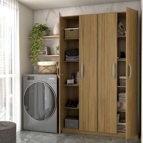 O(a) Lavanderia Completa Andorra 4 Portas 8 Prateleiras Marrocos - Loja é produzido em MDP na escala de brilho Semi-Brilho, e possui um grau de dificuldade de montagem: Médio.
