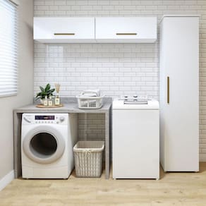O(a) Lavanderia Completa Uberaba 3 Portas 4 Prateleiras Branco - Kaiki Móveis é produzido em MDP na escala de brilho Fosco, e possui um grau de dificuldade de montagem: Médio.