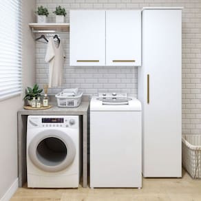 O(a) Lavanderia Completa Uberlândia 3 Portas 5 Prateleiras Branco - Kaiki Móveis é produzido em MDP na escala de brilho Fosco, e possui um grau de dificuldade de montagem: Médio.