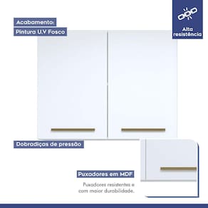 Caracteristicas: Modelo: Guarulhos Marca: Kaiki Moveis Material Principal: MDP Material da Porta: MDP Acabamento: Pintura Escala de Brilho: Fosco Material dos Pes: Plastico Acabamento da Porta: Pintura Acabamento dos Pes: Pintura Escala de Brilho da Porta: Fosco Material do Puxador da Porta: MDF Tipo de Dobradica/Corredica da Porta: Metalica Acabamento da Prateleira: Pintura Escala de Brilho da Prateleira: Fosco Material da Prateleira: MDP Possui Portas: 05 Possui Prateleiras: 06 Quantidade de Prateleiras: 06 Prateleiras Quantidade do Produto: 3 Tipo de Porta: Bater Tipo de Armario Multiuso: Armario Multiuso Suporta Ate (kg): 60 kg Possui Rodizio: Nao Possui Prateleiras: Sim Possui Pes: 04 Altura dos Pes: 5 cm Possui Gavetas: Nao Peso Maximo por Prateleira: 10 kg Pes Regulaveis: Nao Porta com Fechadura: Nao Sapatas Niveladoras: Nao Cor do Produto: Branco Tipo de Puxador da Porta: Externo Possui Espelhos: Nao Quantidade de Portas: 5 Ambiente Principal: Area de Servico Necessita Montagem: Sim Complexidade da Montagem: Alta: deve ser montado por um montador especializado Sistema de Montagem: Parafusos e Cavilhas. Recomendacoes de Uso, Manutencao e Limpeza: Limpar com pano macio e levemente umedecido. Nao utilizar solventes a base e de inflamaveis. Nao utilizar produtos abrasivos.