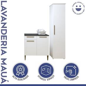 Lavanderia Mauá 1 Armário Multiuso E Balcão Kaiki Móveis Branco Lavanderia Modulada 1 Armario Multiuso e Balcao Maua Nosso conjunto de moveis para area de servico e perfeito para organizar sua area de servico com praticidade e elegancia. Oferece amplo espaco para armazenar produtos de limpeza, ferramentas e outros itens essenciais, garantindo um ambiente funcional e bem arrumado. O armario multiuso conta com prateleiras espacosas, enquanto o balcao oferece uma superficie util e compartimentos extras. Com design moderno e materiais resistentes, e a solucao ideal para ter organizacao e estilo no dia a dia!