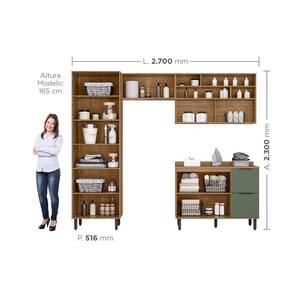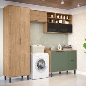 A Lavanderia Modulada Toscana é a decisão certa para transformar sua área de serviço com organização e praticidade. Composto por dois armários aéreos, um balcão com tampo e um armário multiuso, ele oferece espaço de sobra para armazenar produtos de limpeza, ferramentas e acessórios essenciais. O multiuso possui prateleiras amplas, enquanto os aéreos proporcionam uma superfície útil para apoio e deixar os produtos do dia a dia à mão. Além disso, um dos aéreos possui nichos para expor suas coleções ou plantinhas , o que proporciona elegância. Feito com materiais de qualidade, é resistente e funcional, adaptando-se perfeitamente a diversos ambientes. Com design moderno, garante estilo e eficiência no seu dia a dia! Acabamento da Gaveta: Pintura Texturizada UV Acabamento da Porta: Pintura Texturizada UV Acabamento da Prateleira: Pintura Texturizada UV Acompanha Manual de Instalação: Sim Altura dos Pés: 15 cm Altura Máxima dos Pés: 15.0000 Ambiente Principal: Área de Serviço codigo_ean: 7900288062130 Complexidade da Montagem: Média: pode ser montado por mais de uma pessoa e/ou necessite de maior conhecimento para montagem Cor: Freijó/Jade Cor do Produto: Freijó/Jade Cor Interna: Ártico Escala de Brilho: Semi-Brilho Escala de Brilho da Gaveta: Semi-Brilho Escala de Brilho da Porta: Brilhante/Fosco Escala de Brilho da Prateleira: Semi-Brilho Espessura da Chapa: 15 mm Fita Integrada: Não Gaveta com Chave: Não Itens Inclusos: 1 Aereo + 1 Aereo Basculante + 1 Balcão Pia + 1 Multiuso + 1 Tampo + Kit Ferragens + Manual de Montagem Linha ou Coleção: Toscana Manual de Montagem e Instalação: https://product-hub-prd.madeiramadeira.com.br/976328/documents/fd74e38d-05be-41f5-8a0e-c44de3f1290b2659859539817385906608237.pdf Marca: Espresso Móveis Material da Gaveta: MDF Material da Porta: MDF/Vidro Material da Prateleira: MDF Material do Puxador da Gaveta: Alumínio Material do Puxador da Porta: Alumínio Material dos Pés: ABS Material Principal: MDF modular: Sim Necessita Montagem: Sim O Módulo Pode ser utilizado individualmente: Sim Origem do Produto: Nacional Pés Reguláveis: Sim Pés Removíveis: Sim Peso: 161,7 kg Peso Máximo por Gaveta: 3 kg Peso Máximo por Prateleira: 6 kg Possui Cabideiros: Não Possui Espelho: Não Possui Pés: 09 Possui Suporte para Vassoura: Não Possui Tábua: Não Possui Tulha/Cesto: Não Possui Vidro: Sim Prateleiras Removíveis: Não Quantidade de Gavetas: 03 Gavetas Quantidade do Produto: 1 Recomendações de Uso, Manutenção e Limpeza: Para manter seu móvel novo por muito mais tempo, evite locais úmidos, mantenha-o distante de líquidos e de fontes de calor. Evite a exposição prolongada ao sol. Para limpá-lo com segurança utilize uma flanela seca sem produtos abrasivos e nem lustra móveis. Resistente à Chuva: Não Sapatas Niveladoras: Não Sistema de Montagem: Parafusos e Cavilhas Suporta Até (kg): 70 kg Tipo de Armário Multiuso: Armário Multiuso Tipo de Corrediça da Gaveta: Metálica Telescópica Tipo de Dobradiça/Corrediça da Porta: Aço Tipo de Gaveta: Interna e Externa Tipo de Porta: Misto (Bater e Basculante) Tipo de Puxador da Gaveta: Externo Tipo de Puxador da Porta: Externo