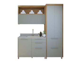 Transforme sua área de serviço em um ambiente prático e moderno. Nosso kit conta com um Armário Multiúso super espaçoso, ideal para armazenar baldes e tudo o que precisa ficar escondo, mas sempre à mão. O balcão não só oferece espaço para organização, como também já vem preparado para receber uma pia, deixando seu ambiente mais funcional e aproveitando melhor o espaço. O grande charme fica por conta do armário aéreo com porta basculante ripada, que traz um toque moderno e sofisticado, além de incluir um nicho decorativo perfeito para você exibir plantas, toalhas ou aquele item especial que dá vida ao ambiente. Possui Portas: 02 Acabamento: Impressão Possui Rodízio: Não Altura do Conjunto: 228 cm Ambiente: null Ambiente Principal: Área de Serviço Cor: Marrom/Verde Informação Complementar: 1x Armário Aéreo 1 Porta Basculante Ripado Marquesa 120Cm 100% Mdf Marrom/Verde Largura: 120 cm Altura: 82 cm Peso: 27,36 kg Profundidade: 32 cm Necessita Montagem: Sim
