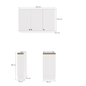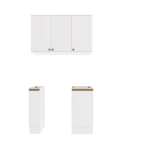 Até as lavanderias mais compactas merecem a beleza e a qualidade do 100% MDF da Celeste da Kappesberg. Com três módulos, práticos e funcionais, o combo CB1294 é perfeito para quem possui pouco espaço, mas não abre mão de organização. Ideal para armazenar toalhas, cestos e produtos de limpeza, você poderá transformar sua lavanderia de uma forma simples e com muita qualidade. Com até sete camadas de pintura, sua cor branco brilho combina perfeitamente com esse ambiente da casa, proporcionando luminosidade e elegância para seu espaço, além de mais facilidade na limpeza. E para um acabamento perfeito, o combo possui rodapés, mas acompanha as ferragens para ser montado suspenso na parede. Outra opção, é adquirir os pés separadamente. E para um projeto ainda mais completo, o nicho com corrediças telescópicas, conta com o espaço perfeito para itens menores, enquanto as portas possuem amortecimento, proporcionando um fechamento suave, sem ruído e mais durabilidade. Os puxadores, metálicos e dourados, com modelos diferentes nos balcões e aéreos, completam a beleza e diferencial do produto.