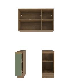 Acabamento: Pintura Fosco / Pintura Touch | Cor: Nogueira/Verde Oliva | Corrediças: Telescópicas | Dobradiça: Com Amortecimento | Garantia: 3 meses para defeito de fabricação | Gavetas: Internas | Matéria-prima: MDF | Peso suportado por cada prateleira: 7 kg | Peso suportado por gaveta: 6 kg | Puxadores: Alumínio / Metálicos | Quantidade de gavetas: 2 | Quantidade de portas: 1 / 3 | Quantidade de prateleiras: 1 / 2 | Sistema de montagem: Parafuso Philips | Tipo de porta: Bater