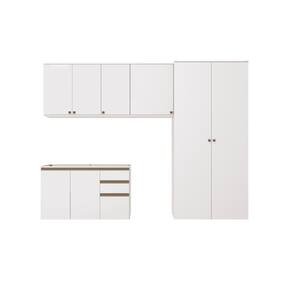 Acabamento: Pintura Brilho | Cor: Branco | Corrediças: Telescópicas | Dobradiça: Com Amortecimento | Garantia: 3 meses para defeito de fabricação | Matéria-prima: MDF | Peso suportado por cada gaveta: 6 Kg | Peso suportado por cada prateleira: 7 kg | Puxadores: Metálicos / Puxadores de Metal e de Alumínio | Quantidade de gavetas: 3 | Quantidade de portas: 1 / 3 | Quantidade de prateleiras: 1 / 2 / 5 | Sistema de montagem: Parafuso Philips | Tipo de porta: Bater