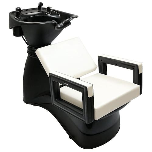 - Cuba: Possui cuba reclinável, ampla e profunda que facilita as tarefas ao lavar cabelos longos e volumosos, fabricada em material que resiste a manchas e produtos químicos. Apresenta formato anatômico na região de acomodação do pescoço garantindo conforto; conta ainda, com frascos de xampu e condicionador embutidos (removíveis para abastecimento e/ou limpeza);