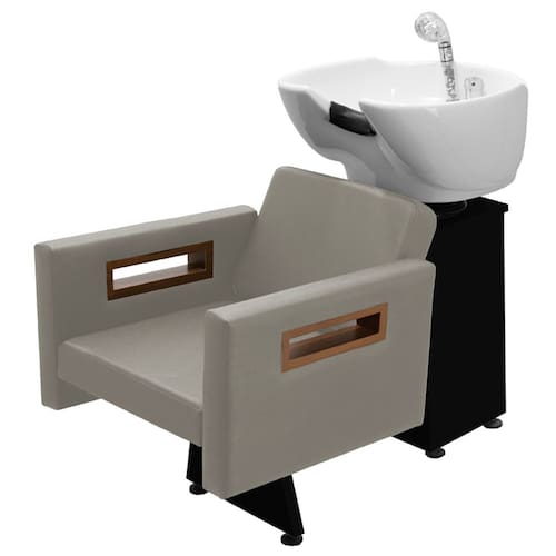 Com um design clean e autêntico, assento amplo e robusto, braços estofados com detalhes em madeira, espuma de alta densidade e assento amplo que proporcionam conforto e comodidade durante o atendimento. Cuba de porcelana branca com ajuste de altura e com ducha cromada e registro que tem a função de manocomando, que permite que você altere a temperatura da água sem precisar mexer na chave do aquecedor! Tudo isso com a alta resistência da base de ferro branco ou preta!
