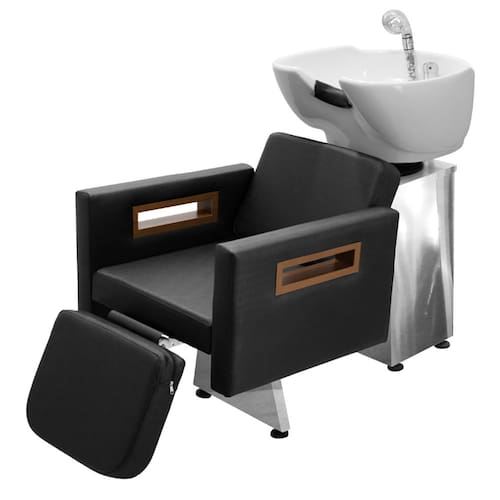 Com um design clean e autêntico, assento amplo e robusto, braços estofados com detalhes em madeira, espuma de alta densidade, assento amplo e um apoio de pernas estofado com regulagem de altura que proporcionam conforto e comodidade durante o atendimento. Cuba de porcelana branca com ajuste de altura e com ducha cromada e registro que tem a função de manocomando, que permite que você altere a temperatura da água sem precisar mexer na chave do aquecedor! Tudo isso com a alta resistência da base de inox!