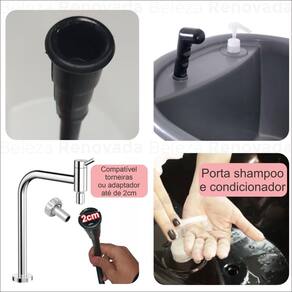 - Conta c/ mangueira p/ escoamento da agua.- Contém ducha de borracha c/ encaixe fácil.- Ducha que conecta em qualquer torneira.- Portátil - Fácil de montar e desmontar.- Não acompanha o aquecedor de água. Mas o lavatório suporta a instalação do aquecedor a parte (Consulte um técnico).