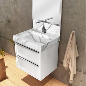O Lavatório para Banheiro é fabricado em porcelanato técnico polido. Possui baixíssima absorção de umidade e é resistente a riscos e manchas. Produto possui cuba esculpida com válvula oculta, em porcelanato. Produto vem com furação de 32mm para fixação da torneira. Acompanha frontão frontal. Ideal para compor com os gabinetes TOP 50 da marca BUMI MÓVEIS. Lavatório compatível também com gabinetes que tenham as seguintes medidas: Largura 50,0cm e Profundidade 40,0cm. O Produto já sai montado de fábrica, basta apenas fixá-lo sobre o gabinete e acompanha Manual de Instalação. Garantia de 12 meses para defeito de fabricação. Não acompanha torneira. Acabamento: Verniz Acompanha Cuba: Sim Altura: 14.7 Ambiente Principal: Banheiro Cor: Calacata Cor da Cuba: Calacata Cor do Produto: Calacata Escala de Brilho: Brilhante Estilo: Moderno Garantia do Fornecedor: 12 meses Itens Inclusos: 01 Lavatório, Frontão Frontal, Manual de Instalação Largura: 52.5 Linha ou Coleção: Banheiro Manual de Montagem e Instalação: https://product-hub-prd.madeiramadeira.com.br/812167/documents/57594edc-2800-4447-ac3f-ef86ed1f83b7p50eslim60comcubaesculpida.pdf Material da Cuba: Porcelanato Material Principal: Porcelanato Técnico Polido Medida da Cuba (C x L x P): 36x26x9,5 Necessita Montagem: Não Origem do Produto: Nacional Peso: 14.18 Possui Prateleiras: Não Possui Sifão: Não Profundidade: 42 Recomendações de Uso, Manutenção e Limpeza: Para limpeza e conservação utilizar somente detergente neutro. Nunca utilizar qualquer tipo de cera. Não utilizar produtos abrasivos (esponjas de aço ou saponáceos). Suporta Até (kg): 10 Suporte para Toalheiro: Não Ean: 7898659841630