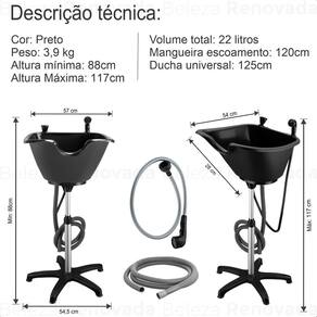Lavatório Portátil Facile Ducha Dompel Para Salão De Beleza: Praticidade e ConfortoDescriçãoO Lavatório Portátil Facile Ducha da Dompel é a solução ideal para profissionais que buscam praticidade e conforto no atendimento de seus clientes. Com capacidade para 15 Kg e altura ajustável de 79cm a 110cm, este lavatório é versátil e funcional, atendendo às necessidades dos cabeleireiros, enfermeiros, cuidadores e uso doméstico.Atributos do ProdutoMarca: DompelModelo: Facile Lavar Cabelo em Casa AtendimentoAltura: 91 cmQuantidade: 1Tipo: Lavatório PortátilMaterial: Polímeros de alta resistênciaCom Rodas: NãoCaracterísticas DestacadasO Lavatório Facile se destaca pela sua leveza, modernidade e funcionalidade, proporcionando uma experiência única para o profissional e o cliente. Com uma cuba ampla e sistema de regulagem de altura, o Facile facilita o processo de lavagem de cabelos longos e volumosos.Sua estrutura em aço cromado garante durabilidade e resistência, enquanto a base em nylon com pentapé robusto oferece estabilidade inigualável. Além disso, sua portabilidade torna-o ideal para atendimentos domiciliares, proporcionando conveniência e qualidade em qualquer lugar.Especificações TécnicasRegulador de alturaTubo parte superior e inferior Pentapé em nylonCuba com sistema de regulagemMangueira de escoamento e duchaInformações AdicionaisO Lavatório Portátil Facile Ducha da Dompel foi projetado com materiais recicláveis, reforçando o compromisso com a sustentabilidade. Recomenda-se evitar o contato com óleos ou gorduras para preservar a integridade do produto.Medidasaltura: 112cmProfundidade: 45cmLargura: 49cmTransforme seu Salão de Beleza com o Lavatório Facile Dompel