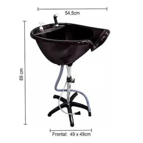 Lavatório Portátil Preto para Cabeleireiro - Santa Clara O lavatório portátil da santa clara foi projetado para facilitar tudo, em questão de espaço, praticidade e eficiência. Para você que trabalha em um salão com mil e um serviços, e precisa de um espacinho a mais, com o lavatório portátil você tem esse espaço, ou para você que trabalha em casa e não tem onde guardar seu lavatório, agora com o lavatório portátil você pode desmonta-lo em dias que não estiver utilizando. O lavatório portátil é simples, prático e completo, adquira já o seu. - Conta com mangueira para escoamento da agua. - Contém ducha de borracha com encaixe fácil. - Ducha que conecta em qualquer torneira. - Portátil - Fácil de montar e desmontar. - Não acompanha o aquecedor de água. Mas o lavatório suporta a instalação do aquecedor a parte (Consulte um técnico). Medidas do lavatório: Tripé: altura regulável (altura máxima 85cm; altura mínima 55cm) Profundidade da bacia: 25 cm Mangueira do chuveirinho: 134cm de comprimento Mangueira de descarte de água: 123cm Composição: Polipropileno, pigmento máster, metal e PVC Contém: 1 mangueira para descarte de água; 1 chuveirinho; 1 frasco multiuso de 1L; 1 lavatório; 1 tripé; 6 rodinhas ou rodízios Fabricante: Santa Clara