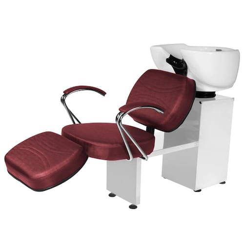 Com um design autêntico, acabamento em costura, assento amplo em espuma de alta densidade e apoio de pernas estofado com regulagem de altura que proporcionam conforto durante o atendimento, braços em ferro cromado com estofado, cuba de porcelana branca com ajuste de altura, ducha cromada e registro com função manocomando que trazem praticidade pra você durante a lavagem dos cabelos. Tudo isso com a alta resistência da base de ferro branco ou preto!