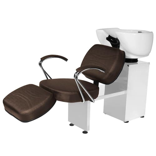 Com um design autêntico, acabamento em costura, assento amplo em espuma de alta densidade e apoio de pernas estofado com regulagem de altura que proporcionam conforto durante o atendimento, braços em ferro cromado com estofado, cuba de porcelana branca com ajuste de altura, ducha cromada e registro com função manocomando que trazem praticidade pra você durante a lavagem dos cabelos. Tudo isso com a alta resistência da base de ferro branco ou preto!