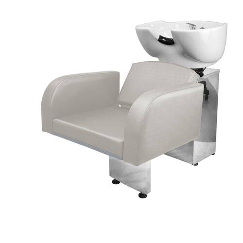 Com um design clean, braços estofados com detalhe arredondado na ponta, espuma de alta densidade e assento amplo que proporcionam conforto e comodidade durante o atendimento. Cuba de porcelana branca com ajuste de altura e com ducha cromada e registro que tem a função de manocomando, que permite que você altere a temperatura da água sem precisar mexer na chave do aquecedor! Tudo isso com a alta resistência da base de inox!