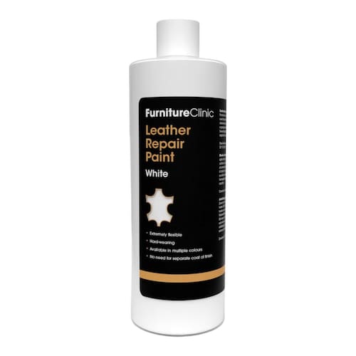 FurnitureClinic Tinta e corante para reparo de couro | Corante autovedante para reparo rápido e fácil de couro | Adequado para sofás de couro, assento de carro de couro, sapatos, bolsa e mais (branco, 500 ml) - 16 AVAILABLE COLORS: Available in 16 colors allowing you to restore faded leather, recolor worn and cracked leather, and even change the color of your leather surfaces completely. - DRIES FLEXIBLE and PREVENTS FUTURE DAMAGE: Our Leather Repair Paint evenly penetrates leather fibers to provide full coverage without compromising the autêntico texture all while leaving your leather less prone to future discoloration. - APPLY by BRUSH, SPONGE, or SPRAY: Brush, sponge, or spray the color onto the leather. The paint will dry within a few minutes though we recommend leaving the piece to cure fully for 24 hours before using. - 2-in-1 SEAL and COLOR LEATHER REPAIR KIT FOR FURNITURE: Our formula is a special mix of color & finish that can be used as a leather color restorer. It seals itself when drying, eliminating the need for a final coat of finish. - REPAIRS SCUFFS, SCRATCHES AND COLOR LOSS FOR ALL LEATHER: You can use the Leather Repair Paint to repair any type of color damage to sofas, cars, clothing, handbags and all other leather items.
