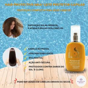 Somos a butique da beleza Uma empresa especializada no comércio de cosméticos e semijoias. Estamos sempre entre os melhores vendedores. Nosso compromisso é com você Seu conforto e segurança são nossos propósitos Servir e ajudar são nossos deveres Hair protective milk- semi di lino alfaparf Proteção superior para cabelos expostos ao sol Você sabia que seus cabelos também precisam de proteção solar Os raios solares são implacáveis não só com a pele, mas também com os seus cabelos. O hair protective milk é a resposta para quem busca preservar a beleza e saúde dos fios durante a exposição solar. Dê aos seus cabelos a proteção que eles merecem. Um cuidado superior, pensado especialmente para você que ama o sol mas não abre mão da saúde e beleza dos seus fios. Indicado para qual tipo de cabelo Ideal para quem passa longas horas ao ar livre, na praia ou piscina. Especialmente eficaz para cabelos secos, quebradiços e com frizz. Benefícios: Proteção uv avançada, combate os danos causados pelos raios solares, evitando o ressecamento e a perda de cor. Hidratação e maciez: fios profundamente hidratados e incrivelmente macios ao toque. Brilho e leveza: cabelos leves, brilhantes e com aparência saudável. Redução de quebra e pontas duplas: os ingredientes hidratantes ajudam a fortalecer os fios, reduzindo a quebra e as pontas duplas. Suavidade ao pentear: facilita o desembaraço, tornando o penteado mais suave e menos propenso a danos. Proteção contínua: a fórmula contínua ajuda a manter a proteção uv ao longo do dia, mesmo após exposição prolongada ao sol. Controle do frizz: mantenha seus cabelos sob controle, mesmo nas condições mais adversas. Resultados Protege e hidrata , para cabelos brilhantes, sedosos e protegidos mesmo ao sol. Modo de uso Distribua o hair protective milk ao longo do comprimento e pontas dos cabelos. Frequência: aplique antes, durante e após a exposição ao sol. Versatilidade: pode ser em cabelos úmidos ou secos. Dicas da butique da beleza Para um cuidado completo e otimizado, recomendamos o uso da linha inteira semi di lino alfaparf sunshine. Combine o shampoo, a máscara after-sun e o hair protective oil para uma proteção e nutrição máxima. Essa combinação assegura que seus cabelos fiquem protegidos, hidratados e radiantes durante todo o verão. A utilização da linha completa garante que cada produto trabalhe em sinergia para resultados ainda mais impressionantes. Dúvidas frequentes O hair protective milk pode ser em cabelos tingidos Sim, o hair protective milk é seguro para cabelos tingidos. Além de proteger contra os raios uv, ele ajuda a preservar a cor dos fios, evitando o desbotamento. Posso usar o produto em cabelos molhados e secos Sim, ele pode ser aplicado tanto em cabelos úmidos quanto secos, proporcionando proteção e hidratação em ambas as condições. Quantas vezes por dia devo aplicar o produto Para proteção ideal, aplique antes, durante e após a exposição ao sol. A frequência pode variar conforme a necessidade e o tempo de exposição. O produto pesa nos cabelos finos Não, sua fórmula leve e cremosa é projetada para hidratar sem pesar os fios, sendo adequada para todos os tipos de cabelo, inclusive os mais finos. Preciso reaplicar o produto se entrar na água Sim, para garantir a proteção contínua, é recomendável reaplicar o produto após nadar ou se molhar. Posso usar o hair protective milk diariamente Sim, ele pode ser diariamente, especialmente se você estiver exposto ao sol regularmente, garantindo a proteção constante dos seus cabelos.