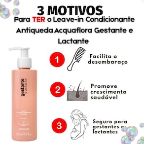 O Leave-in Condicionante Antiqueda Acquaflora Gestante e Lactante é perfeito para o uso diário, especialmente para mulheres que buscam um cuidado capilar completo e seguro durante a gravidez e o período de amamentação. Ideal para quem deseja prevenir e tratar a queda de cabelo, fortalecer os fios e manter a beleza e saúde capilar em um momento tão especial.