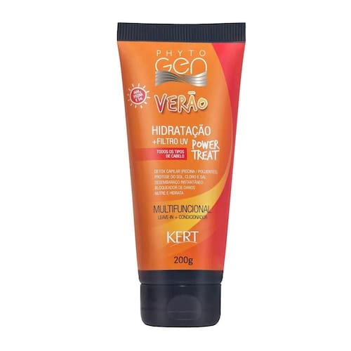 Leave-in Phytogen MULTIFUNCIONAL VERÃO 200g O Leave-in Multifuncional PHYTOGEN VERÃO é o melhor aliado dos seus cabelos , PRÉ e PÓS sol, mar e piscina; desembaraça e condiciona os fios instantaneamente, protege-os da radiação solar excessiva Filtro UV , impede que os cabelos ressequem devido à ação emoliente e reconstrutora do Óleo de Macadâmia rico em fitonutrientes e Ômega 3 ; e pela ação do FIBER DTOX que captura, limpa e remove os ions de cobre presentes nas piscinas tratadas com algicidas que provocam o esverdeamento dos fios em cabelos claros
