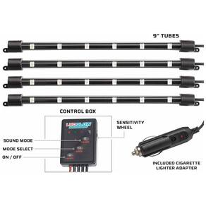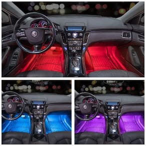 Adicione uma iluminação de destaque LED multicolorida ultra brilhante aos peões e sob os assentos do seu carro ou caminhão com 24 LEDs SMD alojados em 4 tubos de com 5 m de fiação 7 modos de cor sólida incluem azul, vermelho e verde, roxo, azul petróleo, branco e amarelo. Os modos da caixa de controle incluem 4 modos de desbotamento 3 modos de efeito estroboscópico 1 modo de ativação de som que reage à música tocando dentro do seu carro e um modo de desvio de iluminação automático Adaptador de isqueiro de 12V incluído. Fácil solução para alimentar seu kit interior imediatamente. Recursos de 5 m de fiação Instruções de instalação Marca: Não Informado