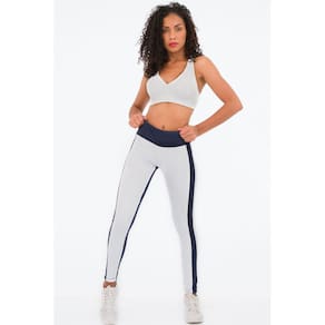 Características Estilo clássico Design com duas faixas laterais Cintura alta com elástico interno Tecido de poliamida 88% poliamida e 12% elastano - cinza e branco Benefícios Conforto, segurança durante seus movimentos Cintura alta esconde gordurinha localizada Não desce no corpo Sem transparência Tecido com proteção UV 50+, mais proteção para sua pele e saúde contra raios ultra-violeta Tecnologia easy-care (não precisa passar), maciez ao toque Secagem rápida Não desbota nem mancha Dicas de usoLegging para atividades físicas, treinos, funcional, yoga, academia, pilates, musculação, casual dia a dia