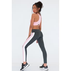 Características Estilo clássico Design com duas faixas laterais Cintura alta com elástico interno Tecido de poliamida 90% e elastano 10% - rosa e branco; 88% poliamida e 12% elastano - cinza Benefícios Conforto, segurança durante seus movimentos Cintura alta esconde gordurinha localizada Não desce no corpo Sem transparência Tecido com proteção UV 50+, mais proteção para sua pele e saúde contra raios ultra-violeta Tecnologia easy-care (não precisa passar), maciez ao toque Secagem rápida Não desbota nem mancha Dicas de usoLegging para atividades físicas, treinos, funcional, yoga, academia, pilates, musculação, casual dia a dia