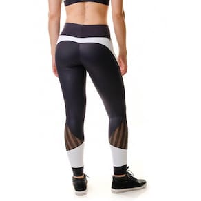 Características Estilo clássico Cintura alta com elástico interno Recortes e detalhes em tela Tecido de poliamida (90%) e elastano (10%) - tela preta; 88% poliamida e 12% elastano - preto brilhante e branco Benefícios Conforto, segurança durante seus movimentos Cintura alta esconde gordurinha localizada Não desce no corpo Sem transparência Tecido com proteção UV 50+, mais proteção para sua pele e saúde contra raios ultra-violeta Tecnologia easy-care (não precisa passar), maciez ao toque Secagem rápida Não desbota nem mancha Dicas de usoLegging para atividades físicas, treinos, funcional, yoga, academia, pilates, musculação, casual dia a dia