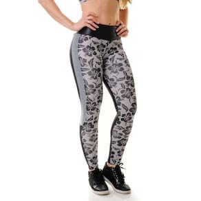 LEGGING FITNESS PRETA FLORAL SUPREMA