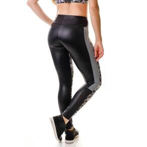 Tecido de poliamida (90%) e elastano (10%) - estampa, cinza e tela; 88% poliamida e 12% elastano - preto brilhante