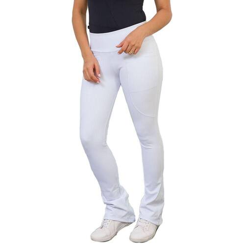 Características Estilo clássico Cintura alta com elástico interno 2 bolsos laterais grandes Tecido de poliamida 88% e elastano 12% - cor branca Benefícios Conforto, segurança durante seus movimentos Cintura alta esconde gordurinha localizada Não desce no corpo Sem transparência Tecido com proteção UV 50+, mais proteção para sua pele e saúde contra raios ultra-violeta Tecnologia easy-care (não precisa passar), maciez ao toque Secagem rápida Não desbota nem mancha Dicas de usoLegging para atividades físicas, Funcional, Yoga, Academia, Crossfit, Pilates, Casual