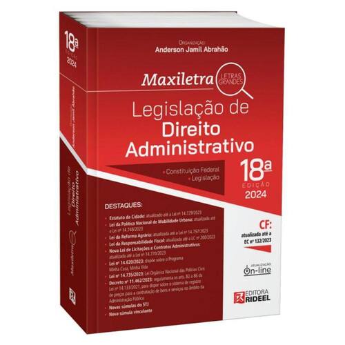 A Editora Rideel, empresa nacionalmente reconhecida por sua destacada atuação e pioneirismo na área de publicação de legislação, apresenta novas edições da revolucionária Coleção de Legislação Maxiletra 2024. Baseada nas já renomadas e consagradas edições de sua coleção de legislação, obras que são ininterruptamente editadas desde a década de 1990, a Rideel criou um novo e moderno projeto gráfico que traz a letra maior. Além disso, a fonte foi trocada, tornando o texto mais legível, e o espaçamento entre letras e parágrafos também foi aumentado. O projeto gráfico e a organização, feitos por especialistas em cada área, conjugam praticidade e comodidade, e os diversos facilitadores de consulta continuam sendo um diferencial das obras, apreciados pelos operadores, professores e acadêmicos do Direito há décadas.